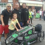 A great day out and always well supported with around 15,000 spectators every year. Teams of four race through the local streets, in an endurance race over two hours in their own homemade four wheel, pedal machines!. Five years ago Eyecatcher agreed to sponsor one of the teams. As race day became closer one of the riders pulled out leaving myself to fill in the hot seat. We have now competed in both the Ringwood and New Milton events every year since. In 2013 we managed to sign up the ex Manchester United and Bournemouth footballer Russell Beardsmore with a best finish of 10th out of 31 cars!